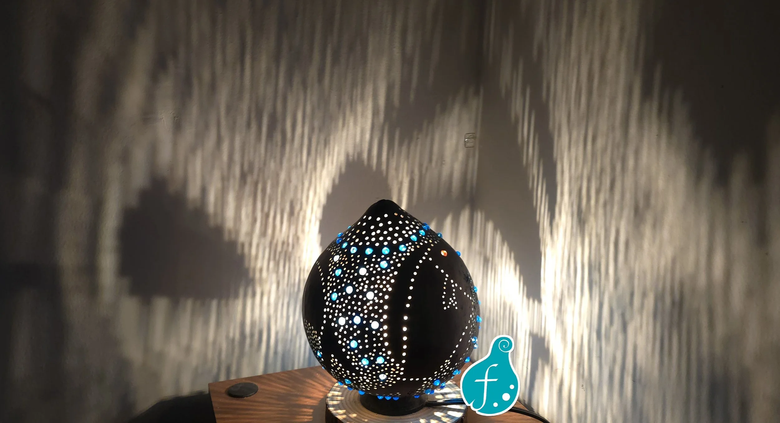 Materials: Durable handcrafted gourd resting on a sturdy black base